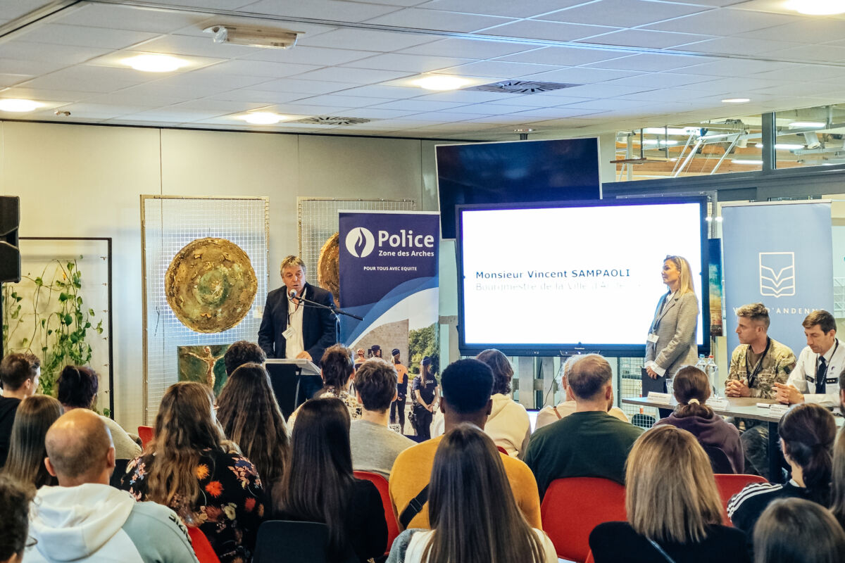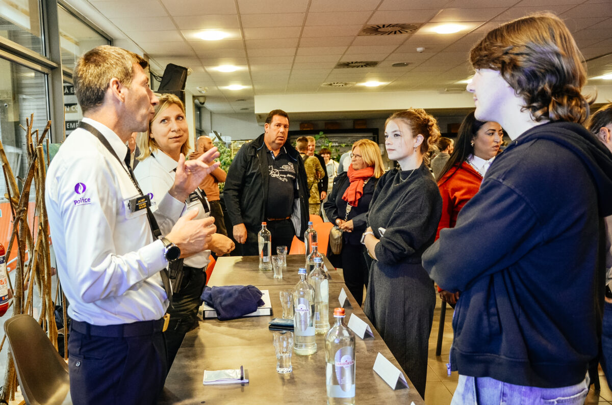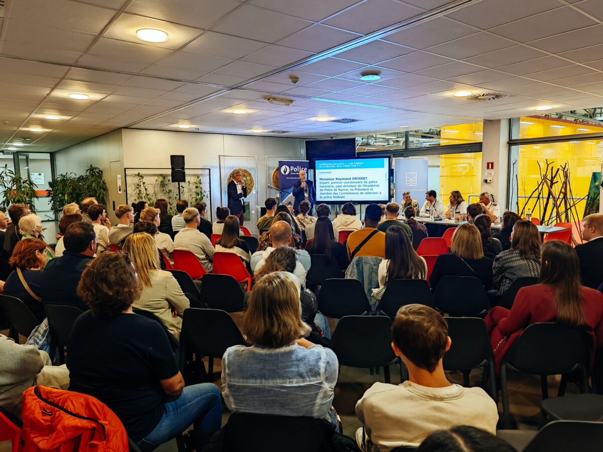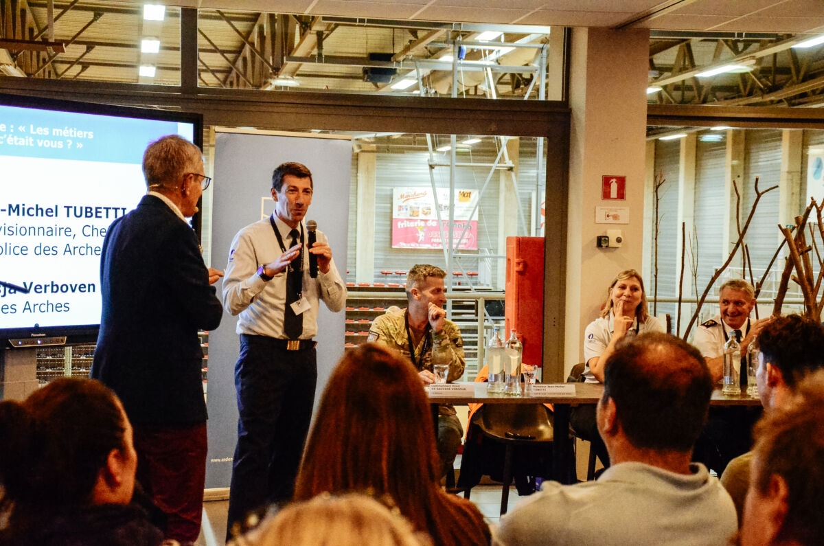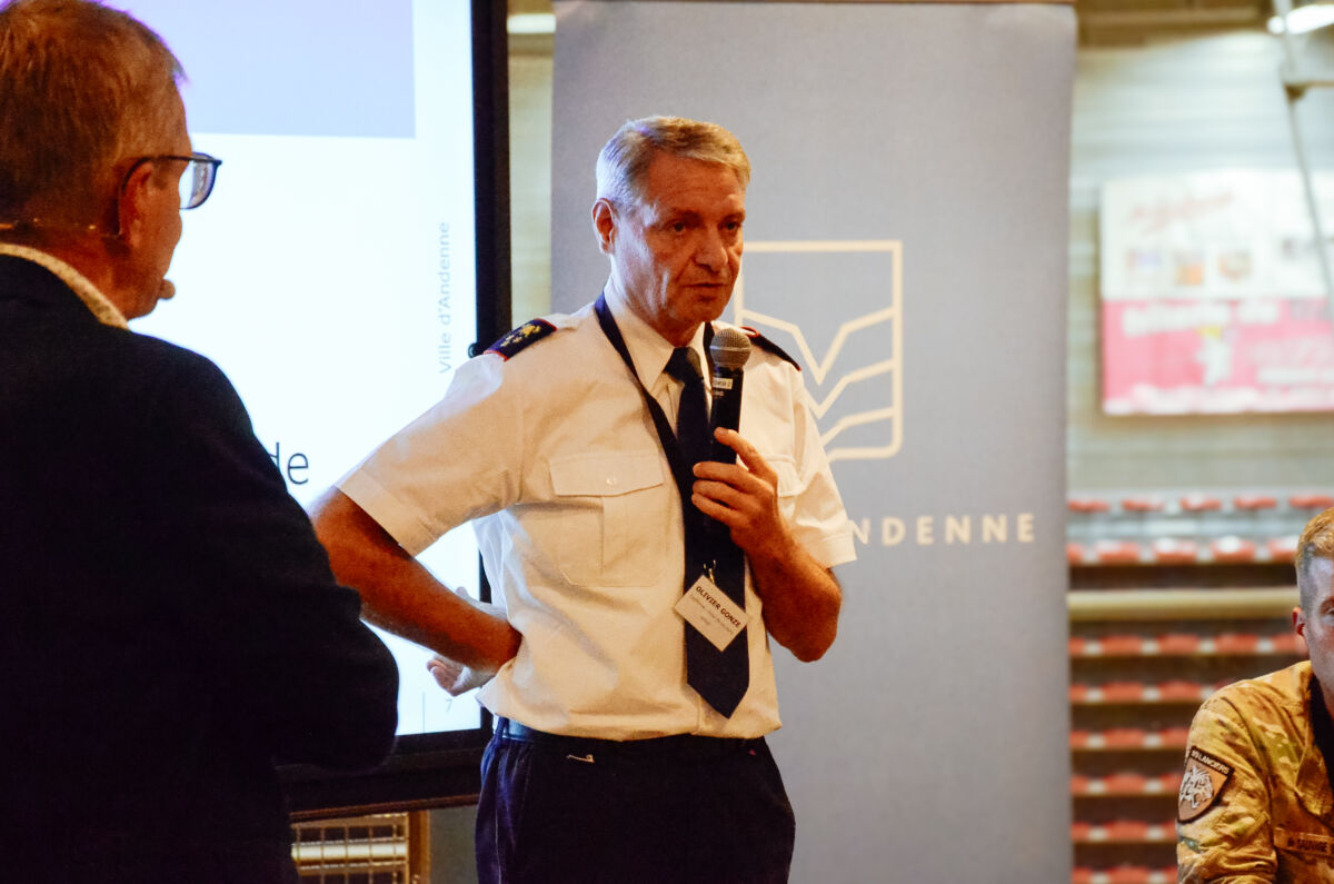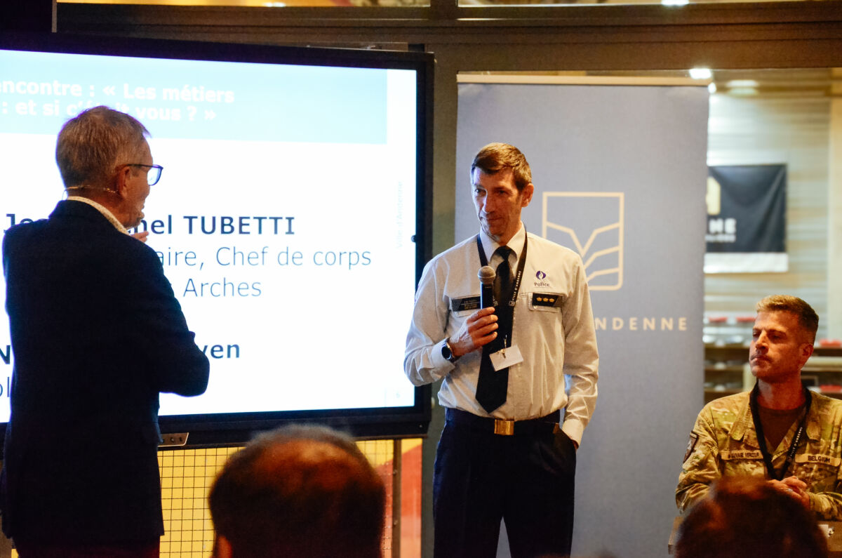 La conférence a été animée par le journaliste Benoît De Rue et a réuni des intervenants de qualité : un représentant de la Zone de secours NAGE, une représentante de la Zone de Police des Arches, un représentant de la Défense et un Master Coach spécialisé dans les métiers de la sécurité.