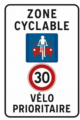 Les voitures doivent adapter leur comportement en respectant une vitesse maximale de 30 km/h et il est interdit tout dépassement des cyclistes.